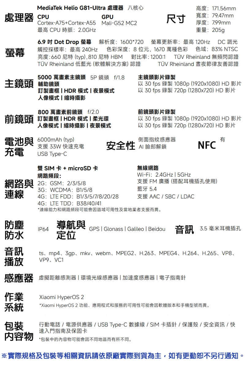 型號:Redmi 15C