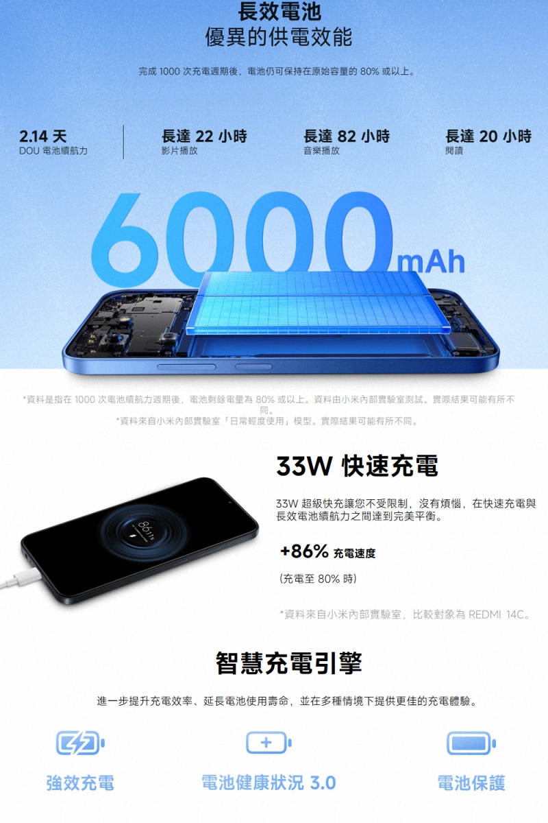 6000mAh支援33W快充