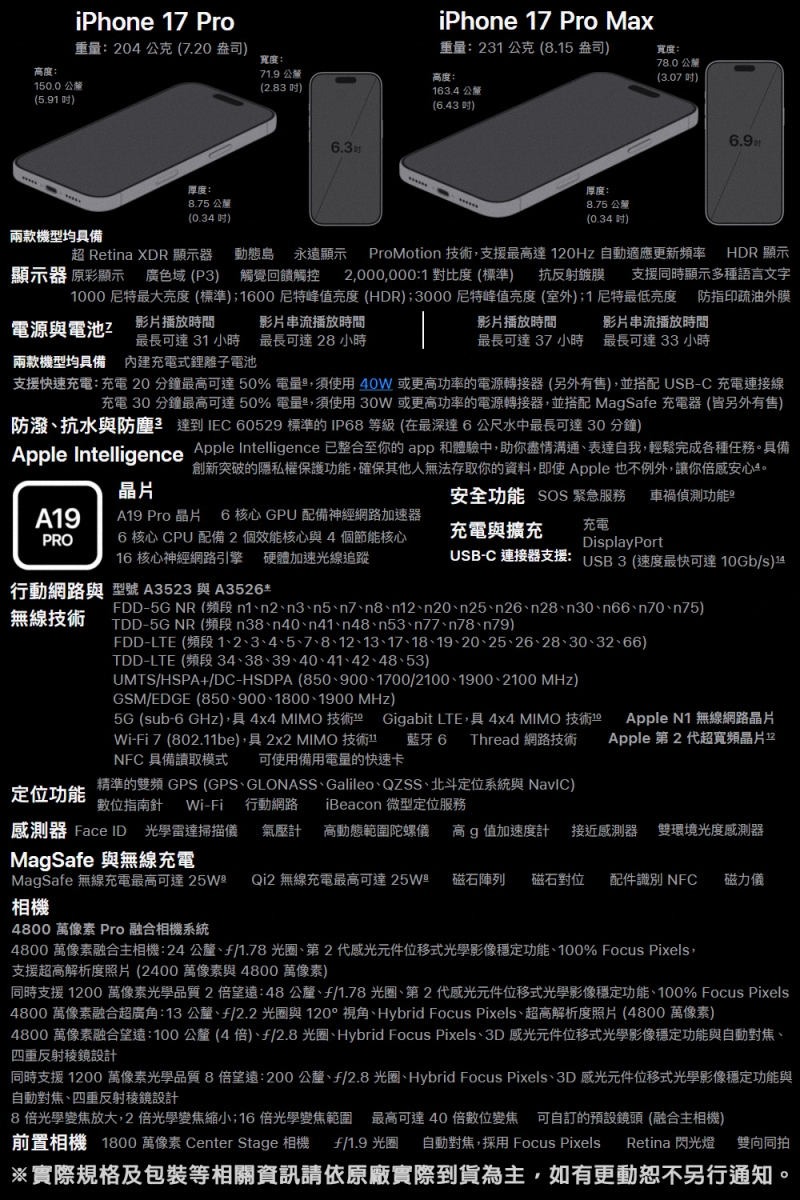 型號:iPhone 17 Pro Max (A3526)