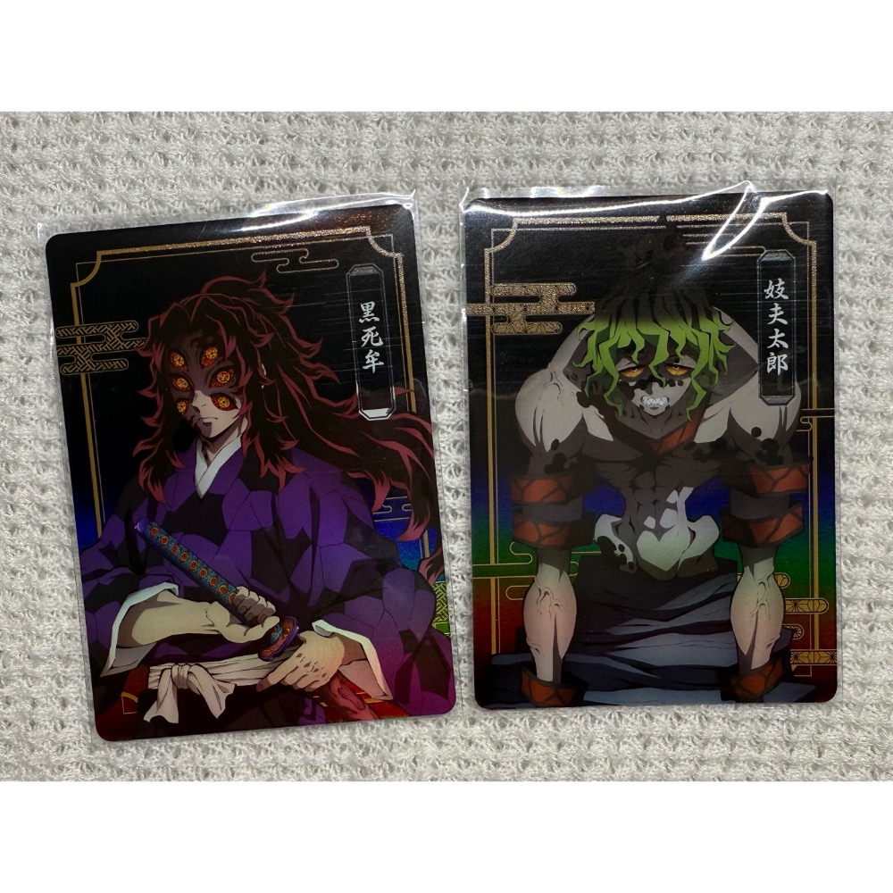 黑死牟、妓夫太郎,2張一組,卡片都有保護套。