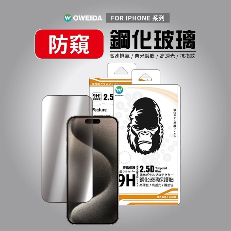 Oweida iPhone全系列 15/14/13/12/11/X/78/SE 防窺 2.5D滿版鋼化玻璃貼