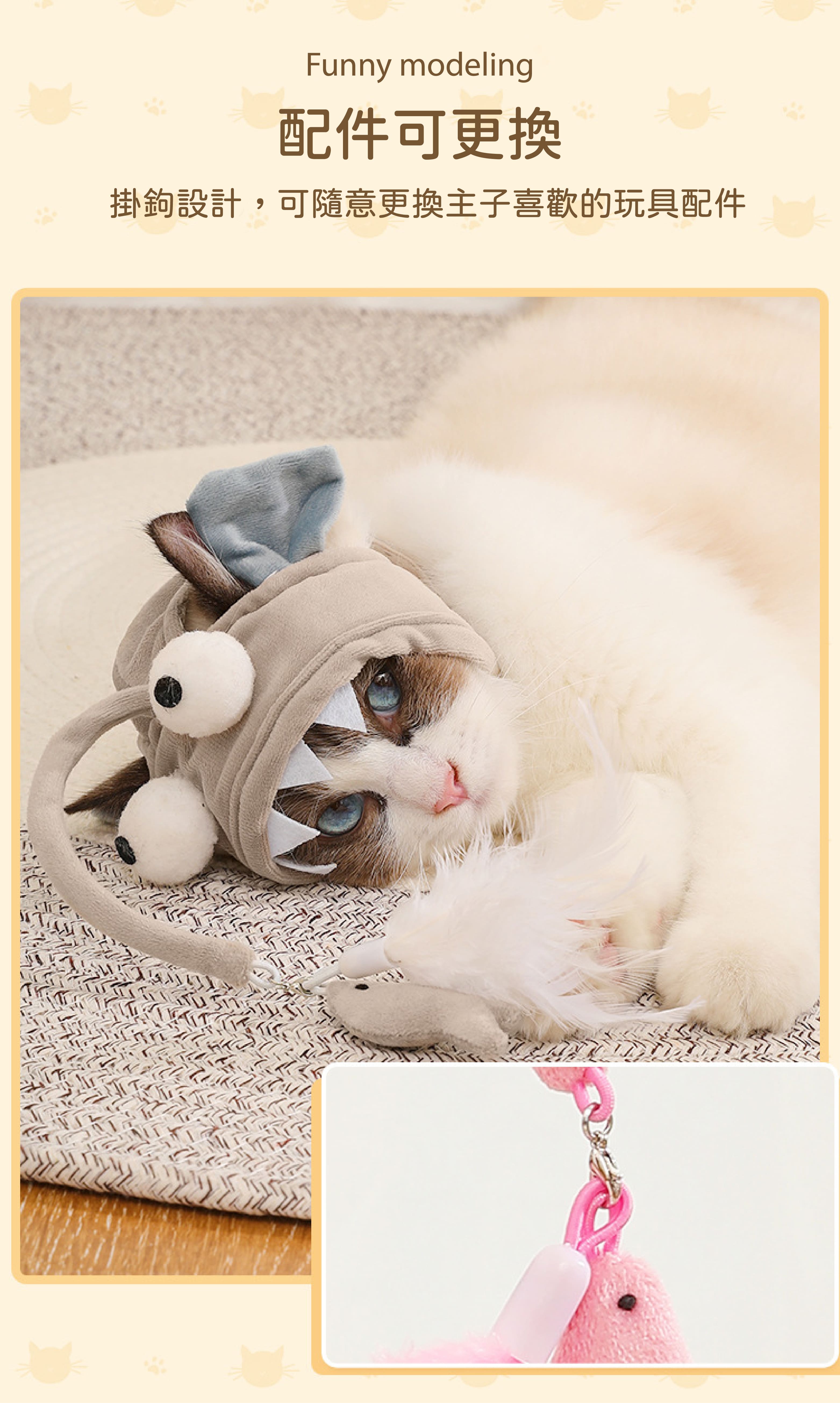 頭戴掛鉤設計 可自行更換喵皇喜歡的玩具配件