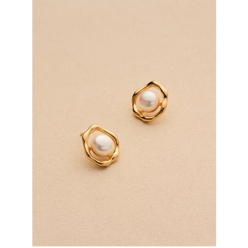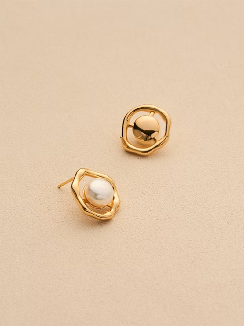 S925銀珍珠耳環,不規則的細邊框中搭配8mm天然淡水珍珠,簡約大方氣質滿溢,讓您秒變高級臉!