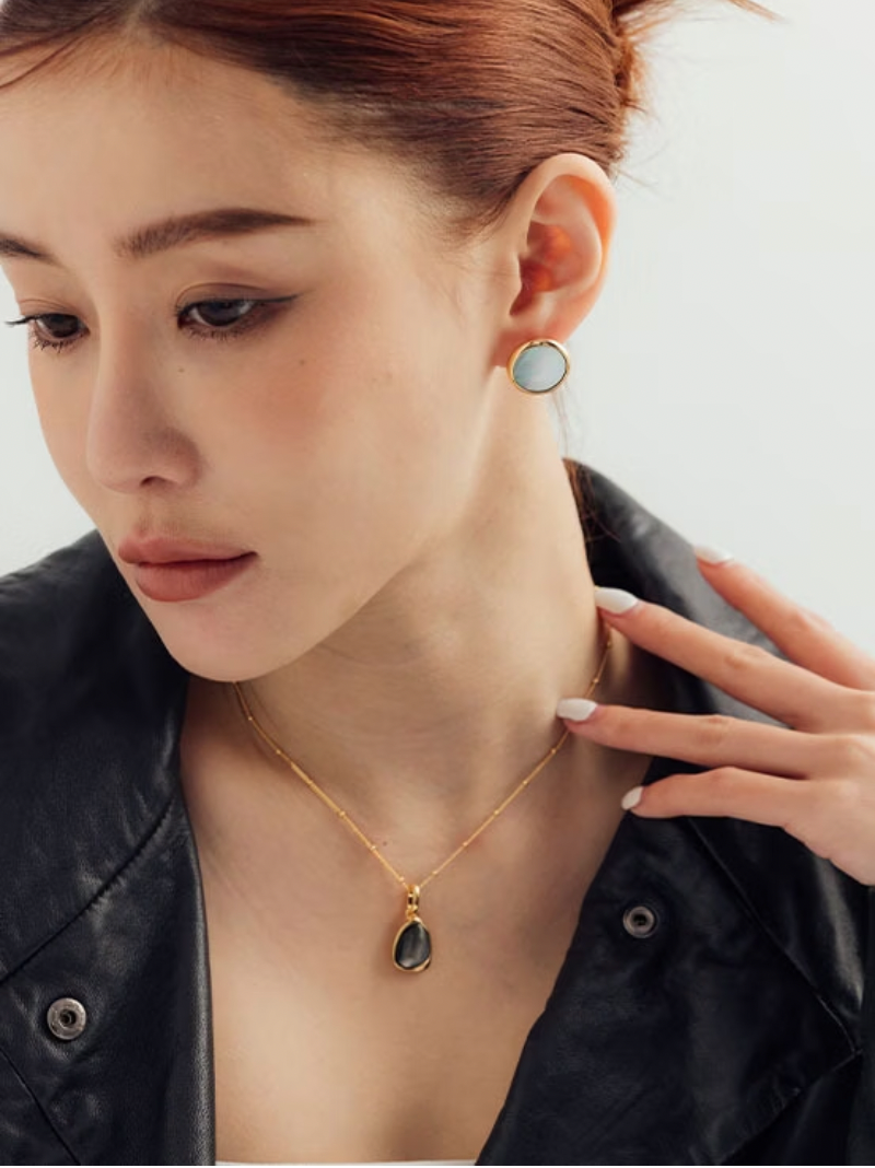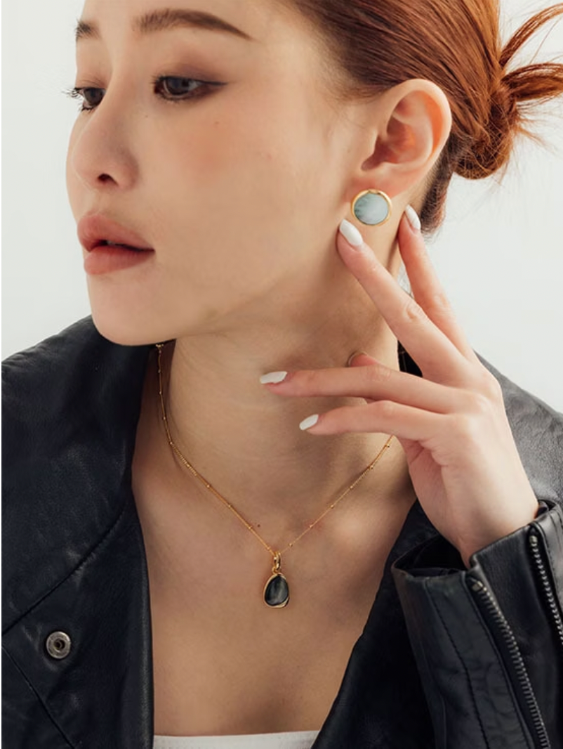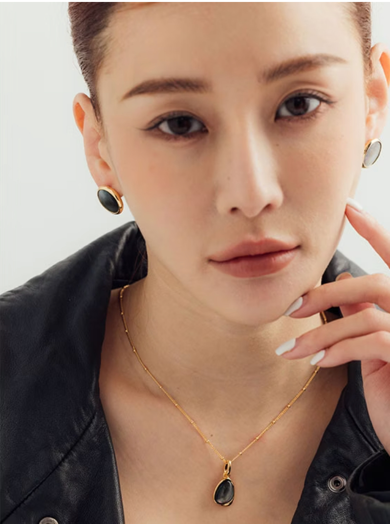 虹彩豐富的黑母貝,在極簡造型的襯托下,利用不同光線的折射,展現豐富多樣的神秘風貌,是一款看似簡單,實則氣場十足的飾品~
