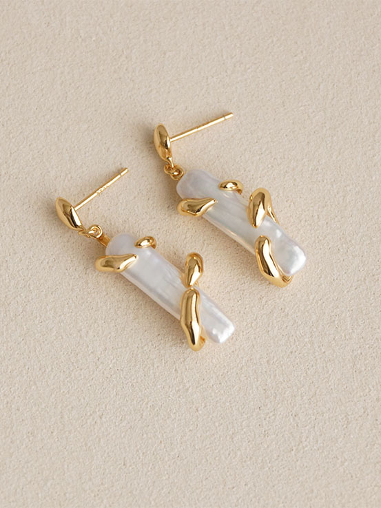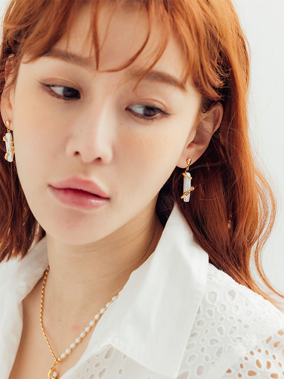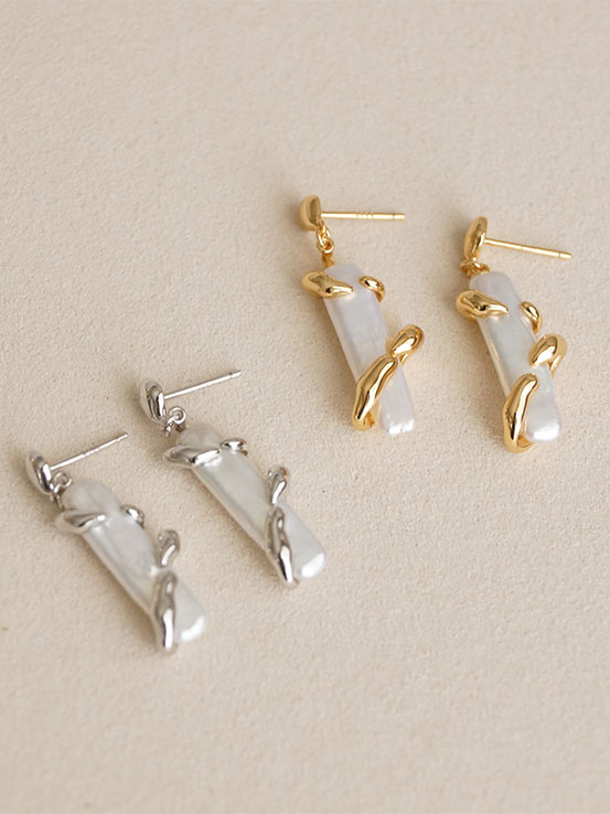 獨一無二的天然巴洛克珍珠,自然元素設計,枝狀鑲嵌緊緊守護,珠光與銀光交織,甜美浪漫又有個性~