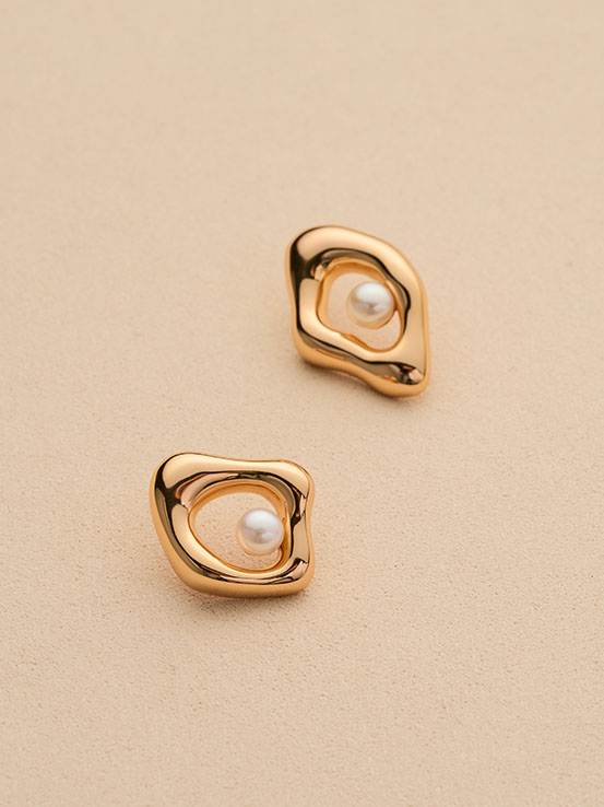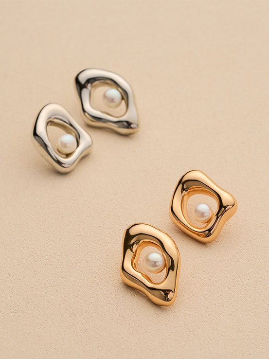 不規則邊框的立體造型,中間鑲嵌天然淡水珍珠,高雅大方的設計,簡約不失存在感的渲染力,大大增加妳的回頭率!