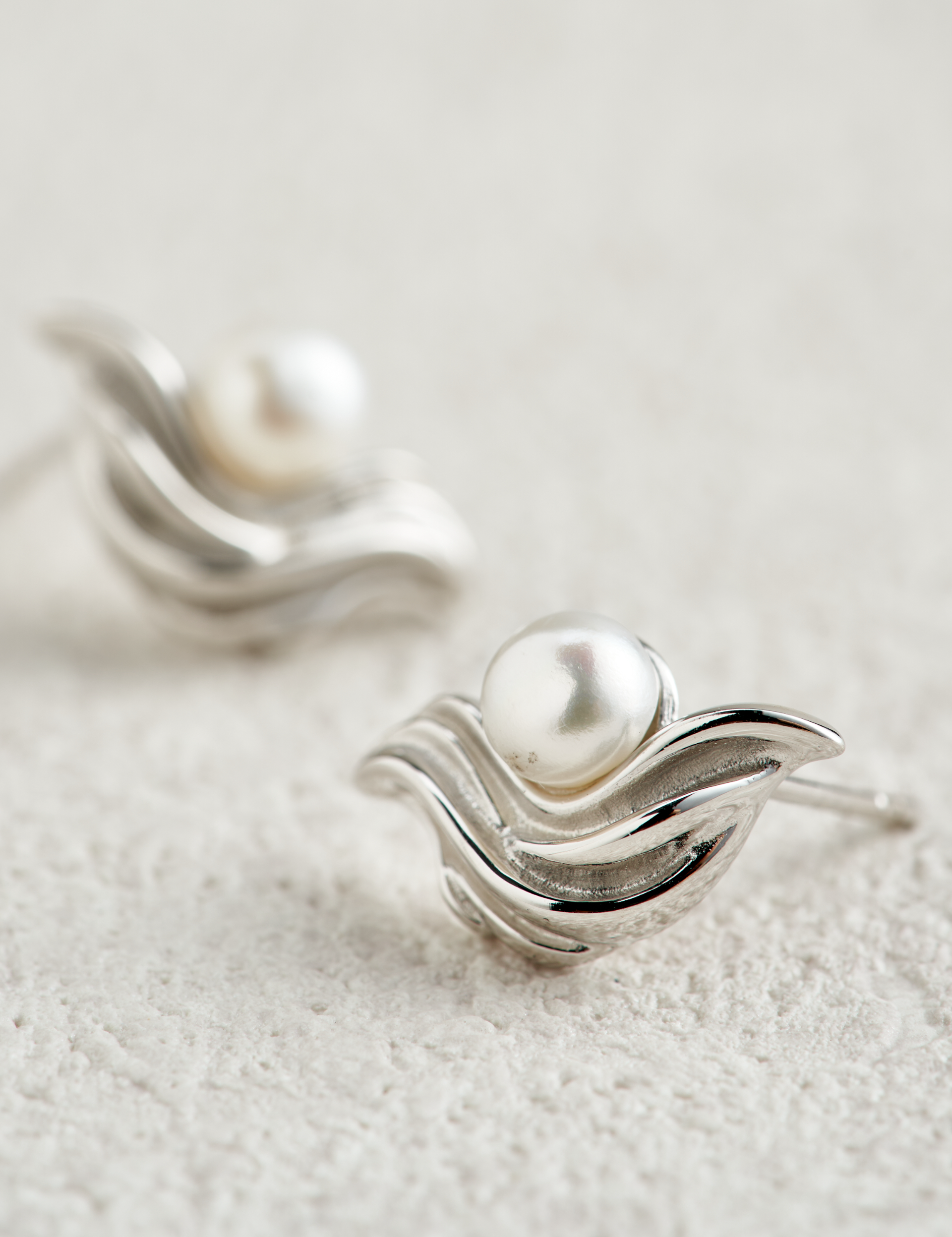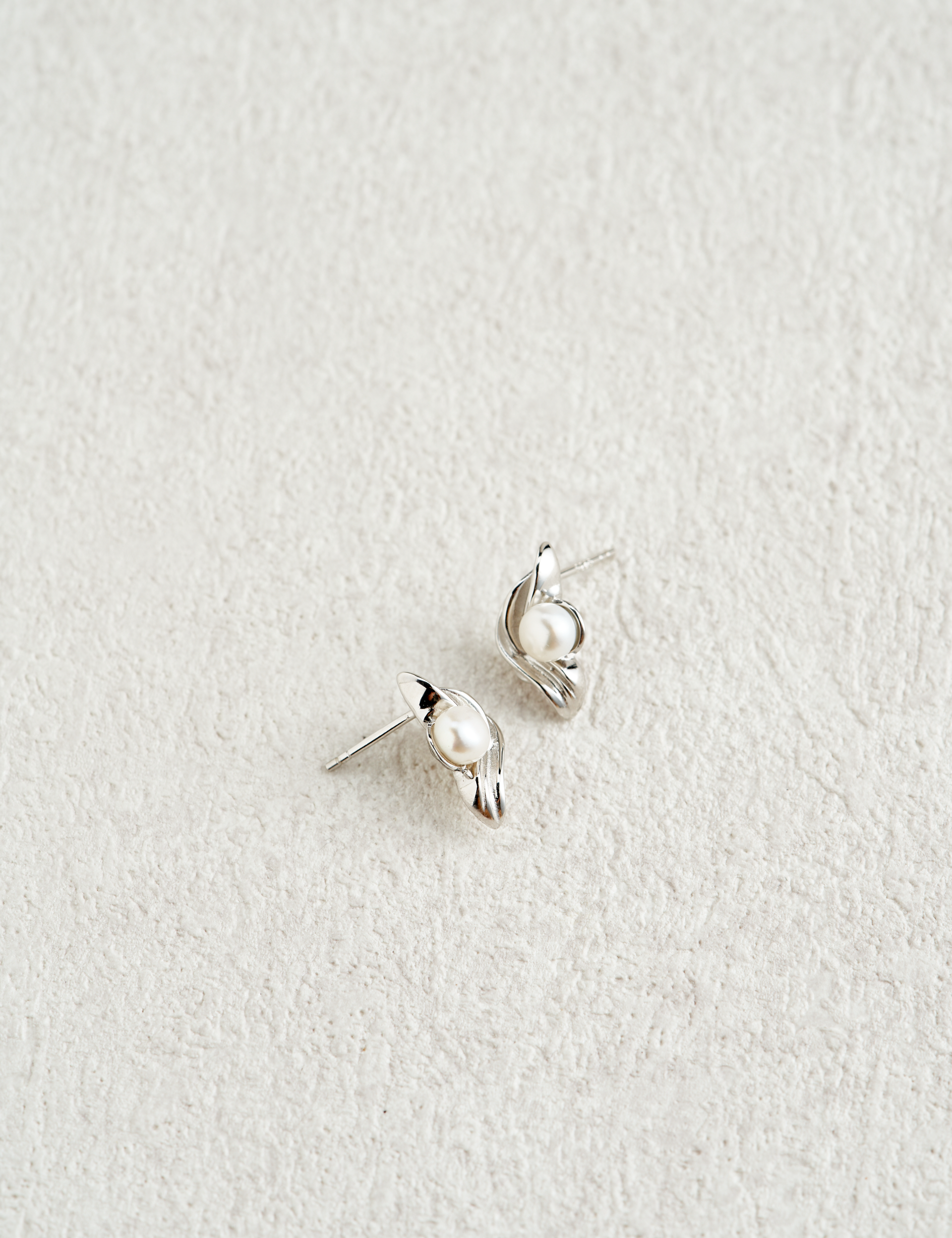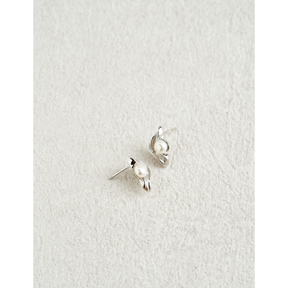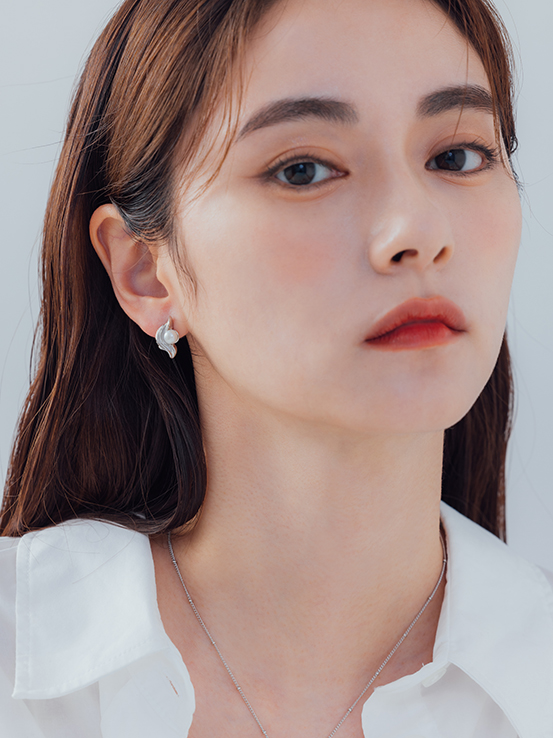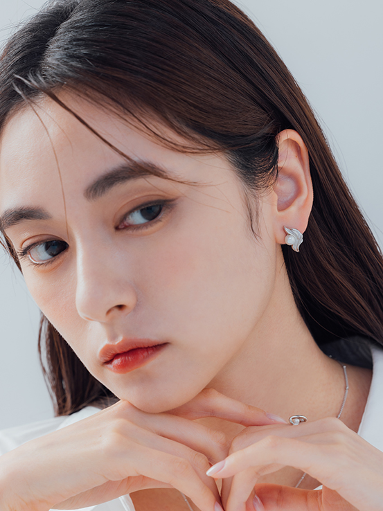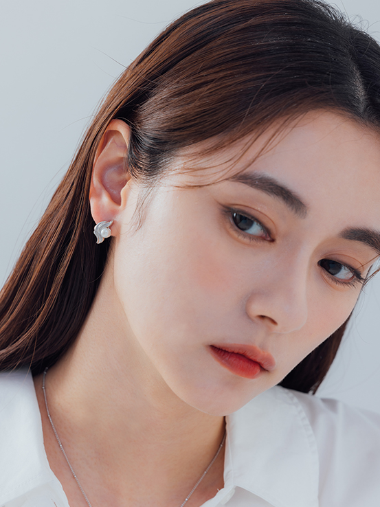 利用凸面為亮面,凹面為霧面的交錯設計,包覆單顆5mm點位的天然淡水珍珠,日常通勤佩戴也不違和的百搭款。