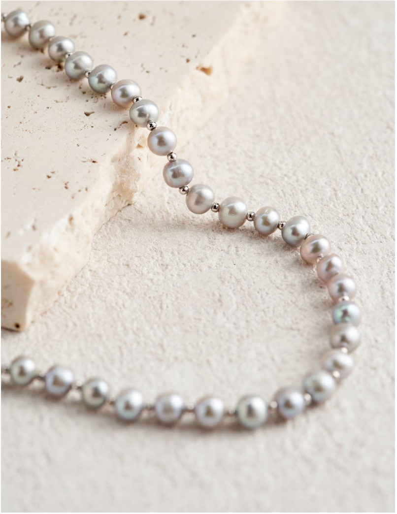 銀色極光珍珠項鍊&灰色淡水珍珠耳釘,都採用天然灰色淡水珍珠,帶有虹彩的泛光,猶如極光般璀璨耀眼,如同母親般獨一無二!