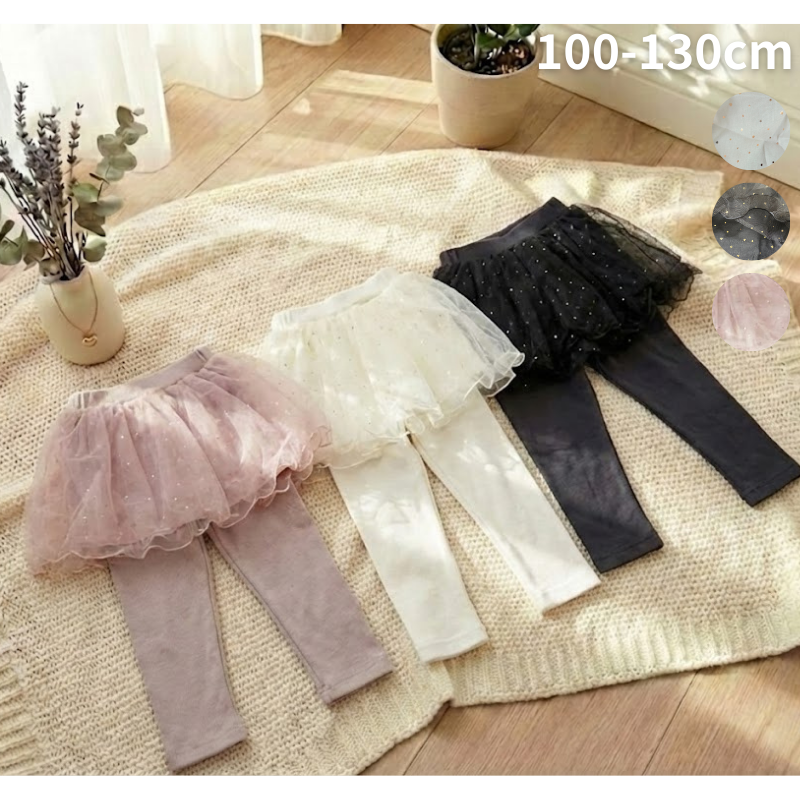 面料:柔軟坑條棉 (內搭褲部分) + 網紗 (裙子部分)