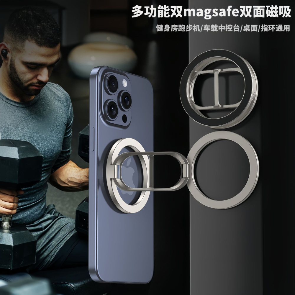跨境magsafe雙面磁吸手機支架 健身房跑步機折疊磁吸支架車用支架