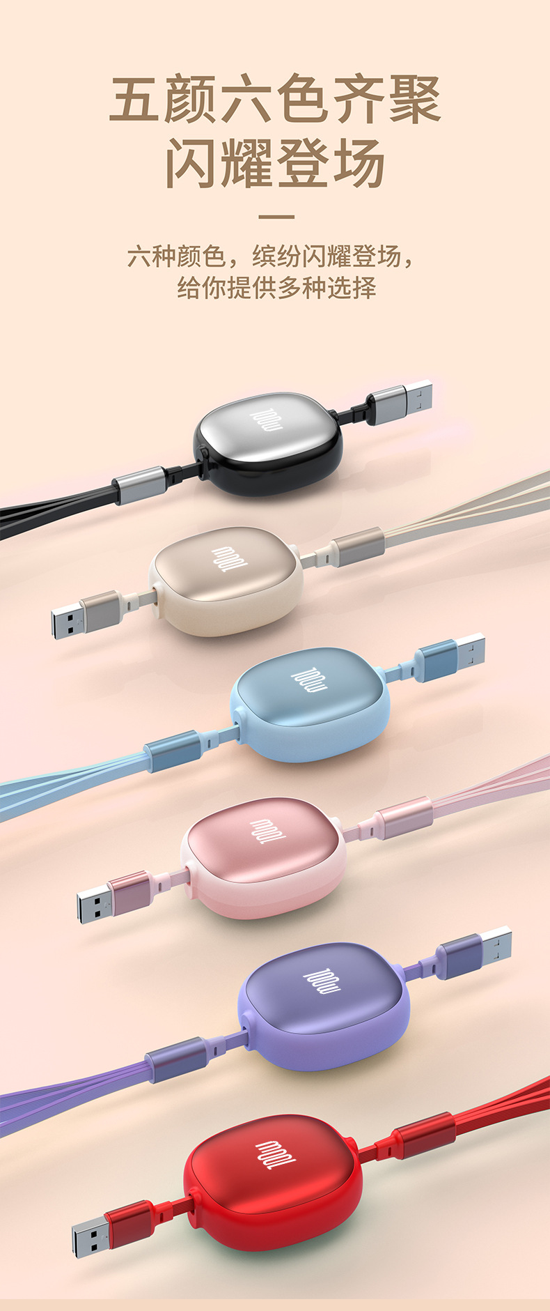 USB一拖三 馬卡龍三合一伸縮數據線快充一拖三充電線多功能TYPE-C手機電源線 (1.2M)