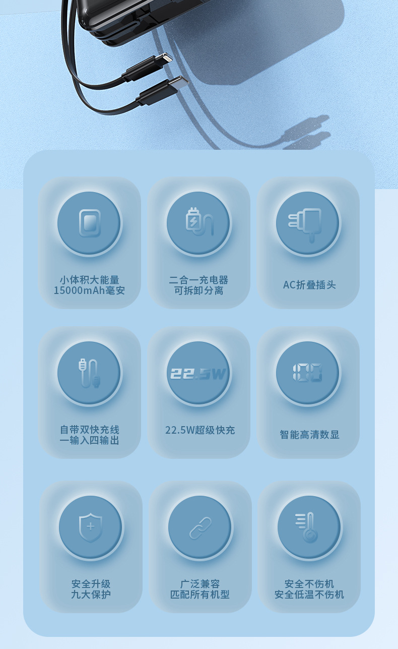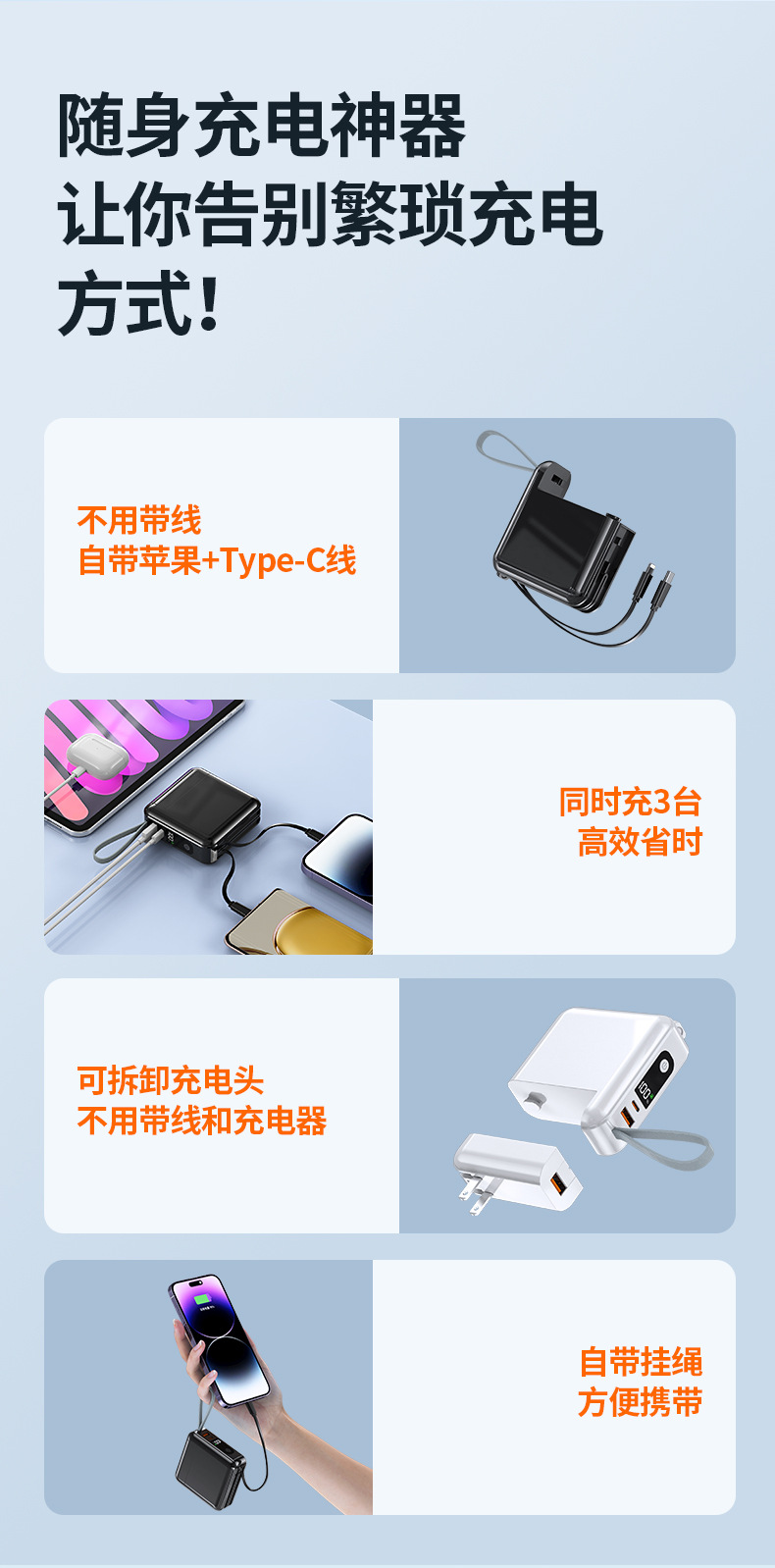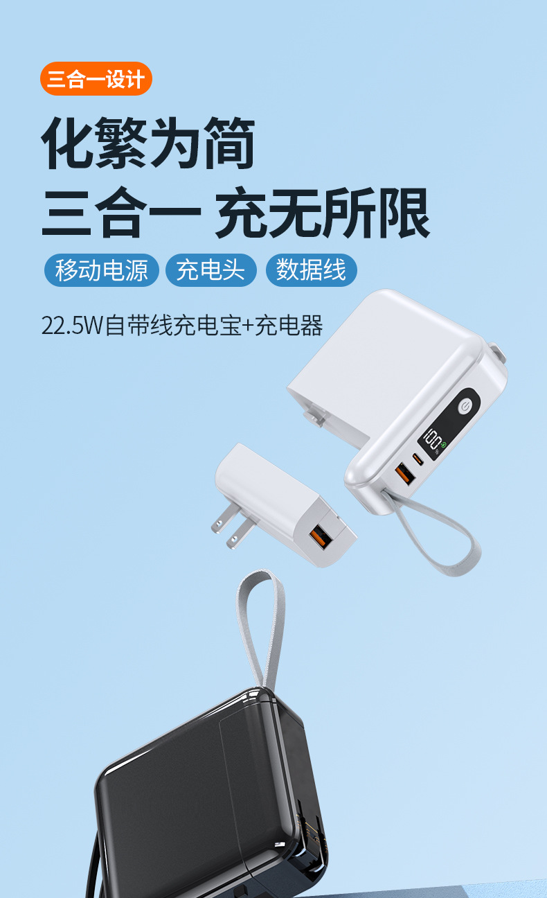 (買即送:隨選質感防水收納包) 跨境AC插頭自備線22.5W超級快充充電寶20000毫安培3C認證行動電源