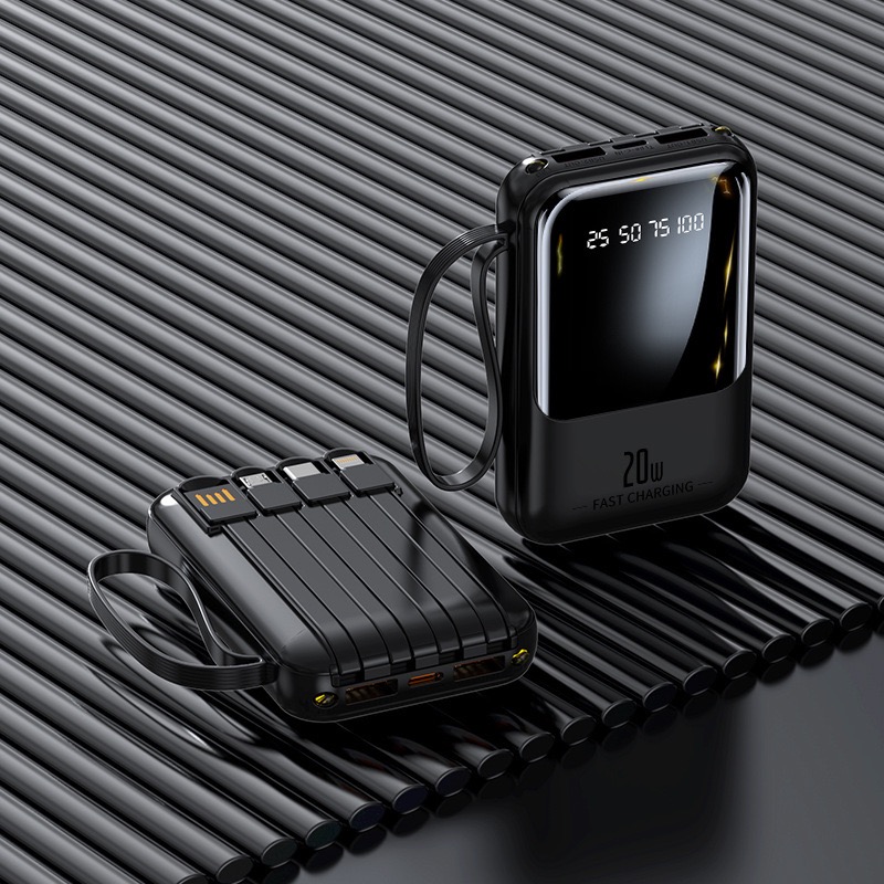 迷你自帶線充電寶20000毫安大容量快充便攜移動電源