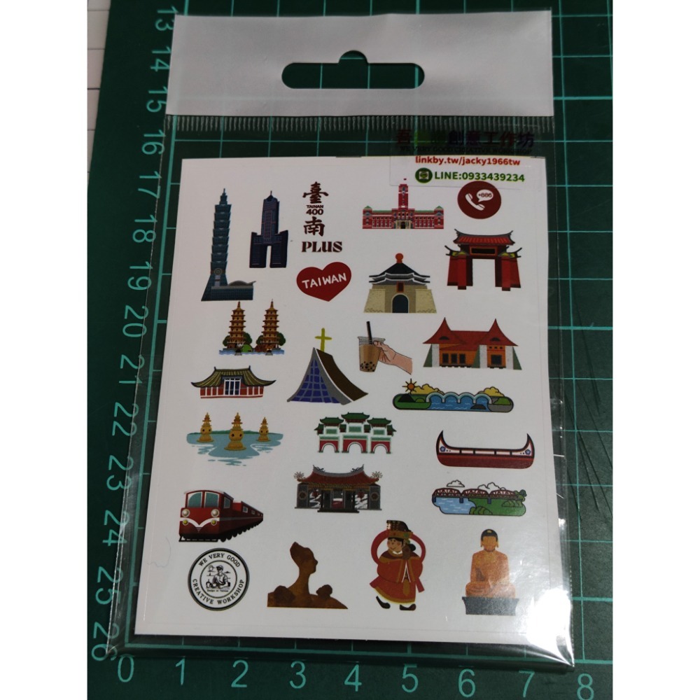 有台北101.高雄85大樓。台南孔廟。台中公園。珍奶。雞排。車輪餅等等。。。。。臺灣元素。送禮自用皆宜。