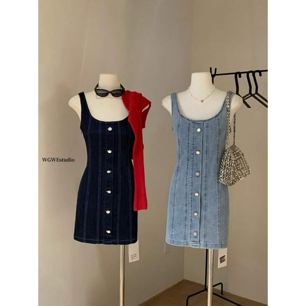 現貨 / 復古牛仔吊帶裙修身顯瘦包臀裙性感連身裙女生洋裝W5490