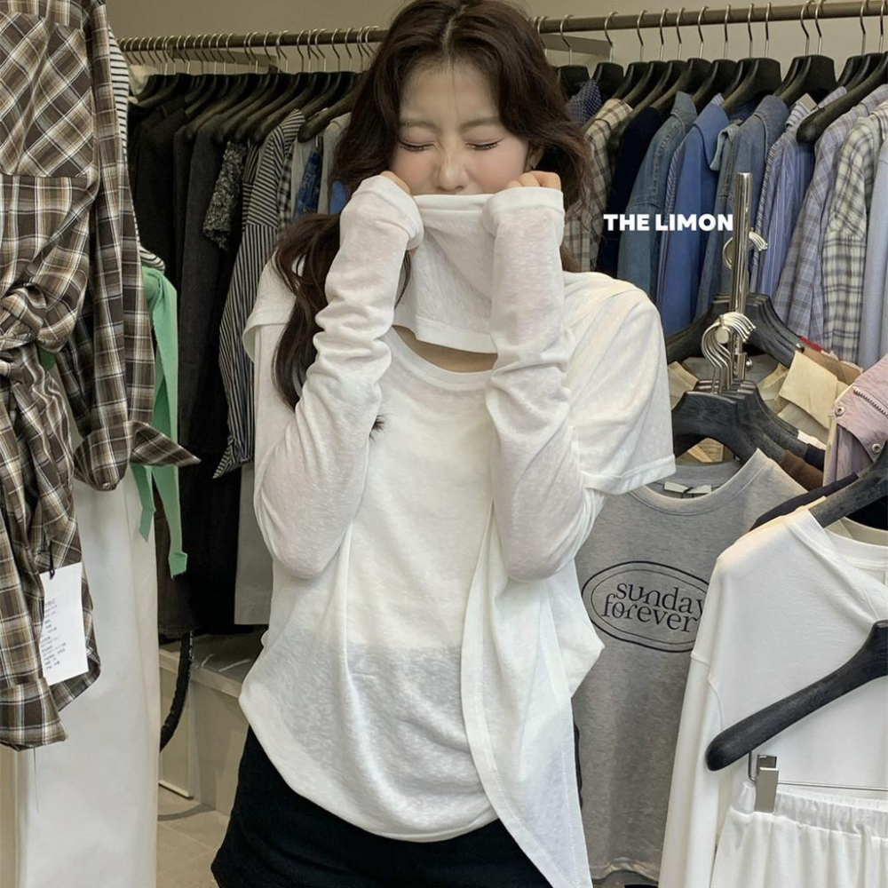 819 THE LIMON檸檬綠茶2025鞦季法式小衆針織衫長袖T恤+披肩兩件套女