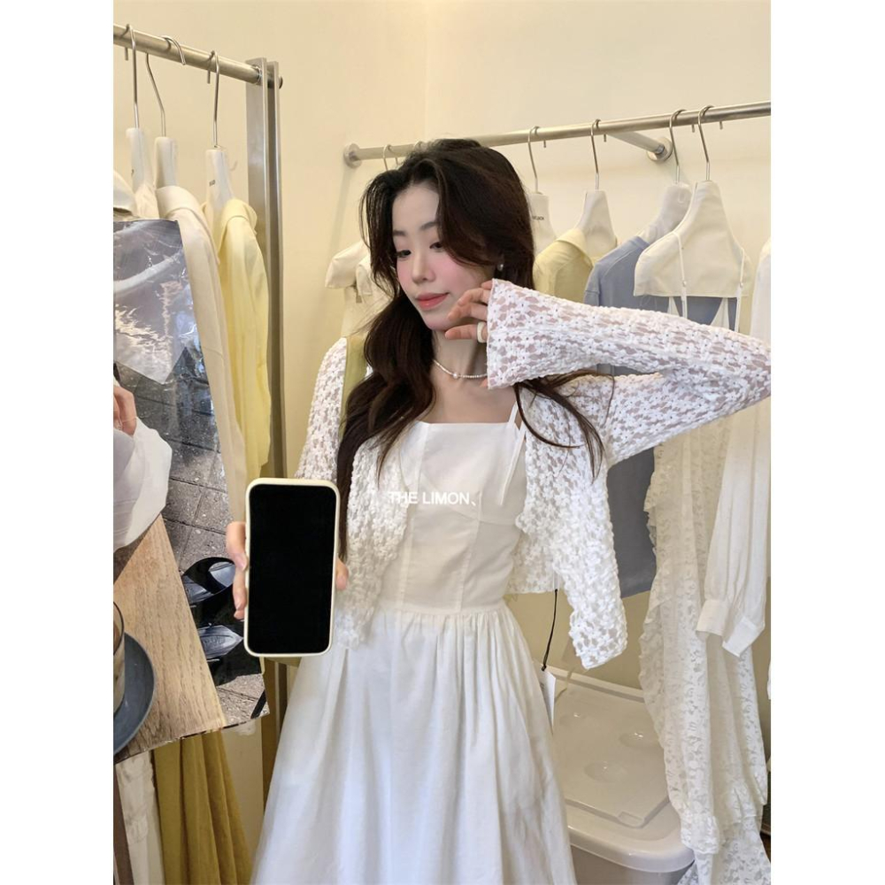 貨號:lemon8519 麵料名稱:蕾絲 主麵料成分:粘膠縴維 圖案:純色 厚薄:薄 組閤形式:單件 款式:基本款 版型:寬鬆型 袖型:常規袖 上市年份/季節:2025夏季 領型:V字領 袖長:長袖 流行元素:純色 衣長:短款(40cm<衣长≤50cm) 工藝:絲光 顔色:白色 尺碼:均碼 風格類型:氣質通懃 穿著方式:開衫 主麵料成分含量:70%(含)-80%(不含) 門襟:單排扣 風格:通懃風 是否跨境貨源:否