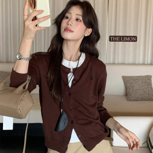 819 THE LIMON檸檬綠茶2025鞦季假兩件針織衫打底衫軟糯毛衣開衫上衣