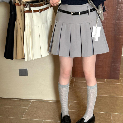 檸檬家 挖到寶啦韓版百褶設計感顯瘦半身裙(配腰帶)TM-1612
