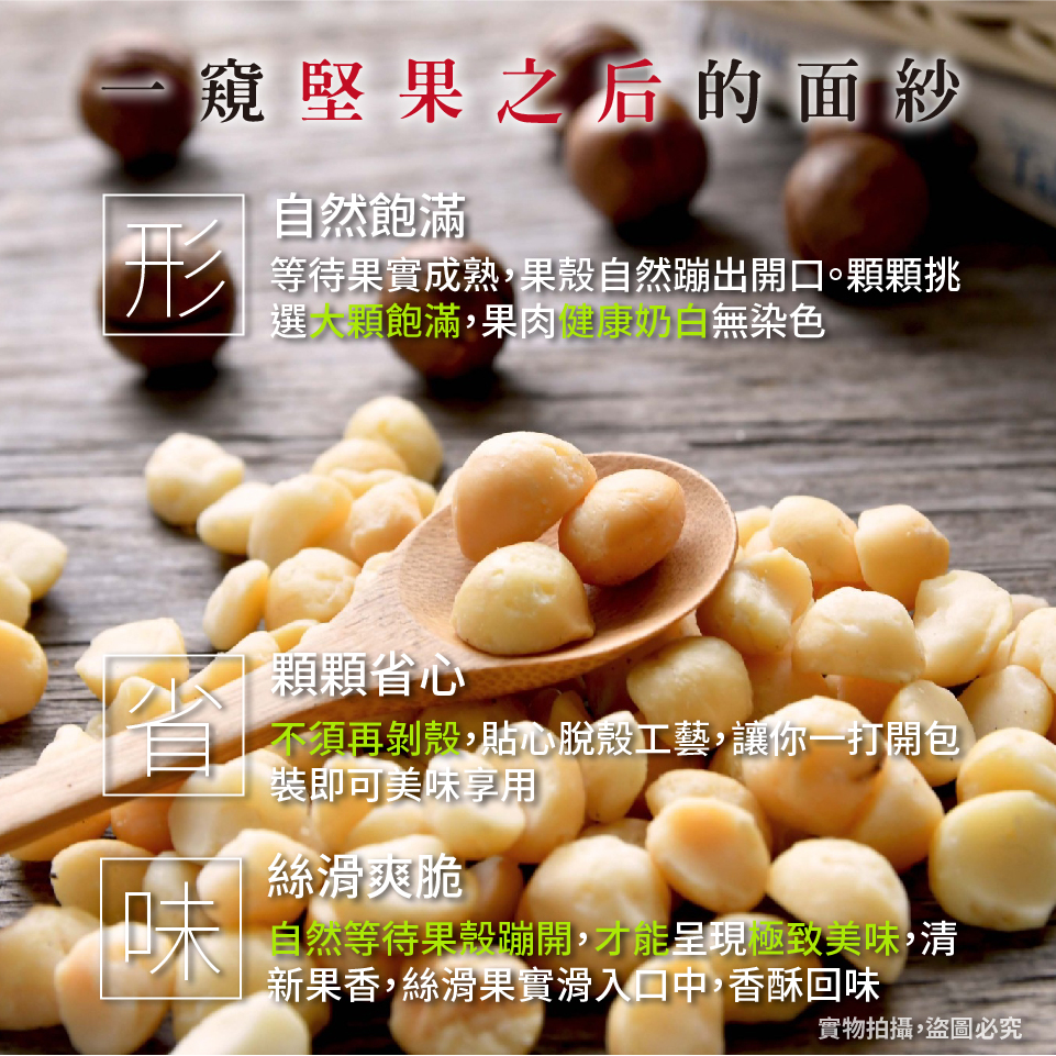 自然等待果殼蹦開,才能呈現極致美味,清新果香,絲滑果實滑入口中,香酥回味!