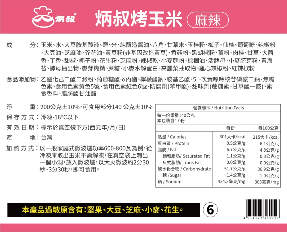 【萊素客棧】炳叔烤玉米(中支) 麻辣 超人氣網路團購 夜市傳統美食 雙色玉米 經典味道