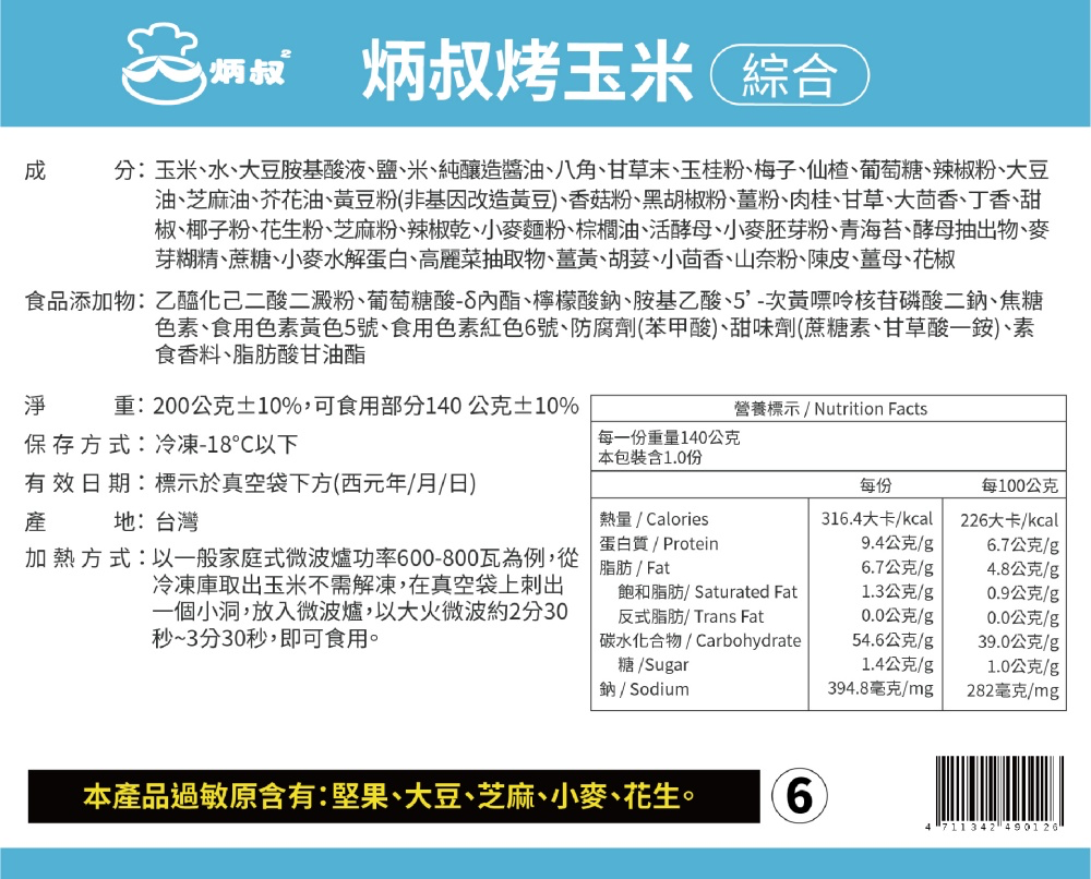 【萊素客棧】炳叔烤玉米(中支) 綜合口味(小辣) 超人氣網路團購 夜市傳統美食 雙色玉米 經典味道