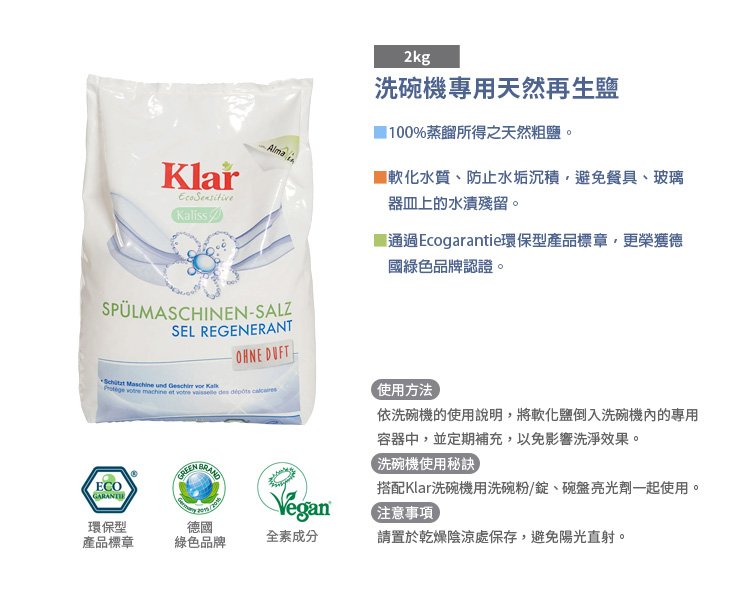 德國Klar-天然再生鹽(洗碗機專用) 2kg X 4包