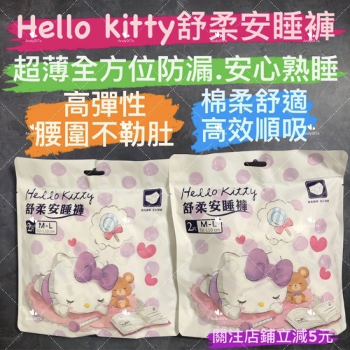 有現貨-HELLO KITTY 舒柔安睡褲 2片入 棉柔順吸 安心熟睡 M-L