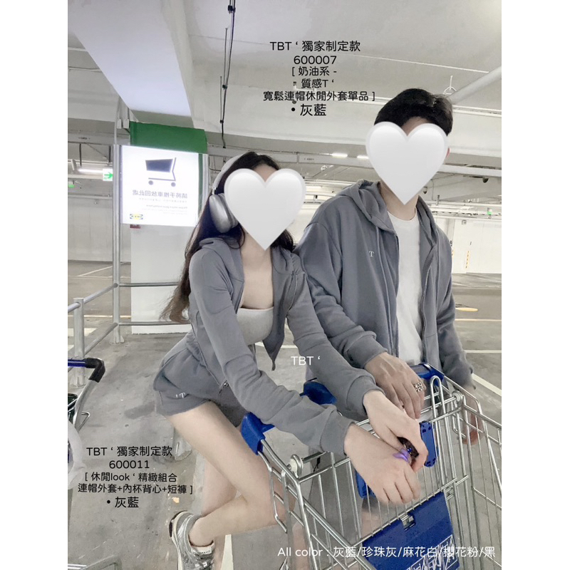現貨灰藍💗 TBT‘獨家制定款 600011 [休閒look‘精緻組合 連帽外套+內杯背心+短褲]