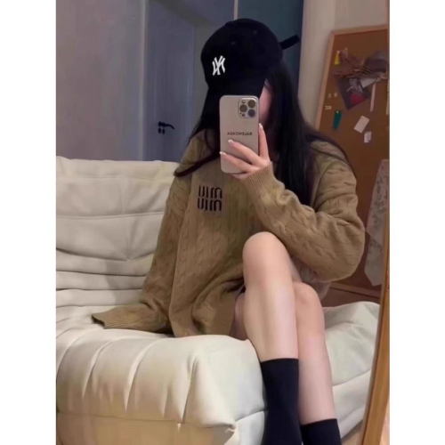 現貨💗 刺繡字母麻花邊寬鬆毛衣