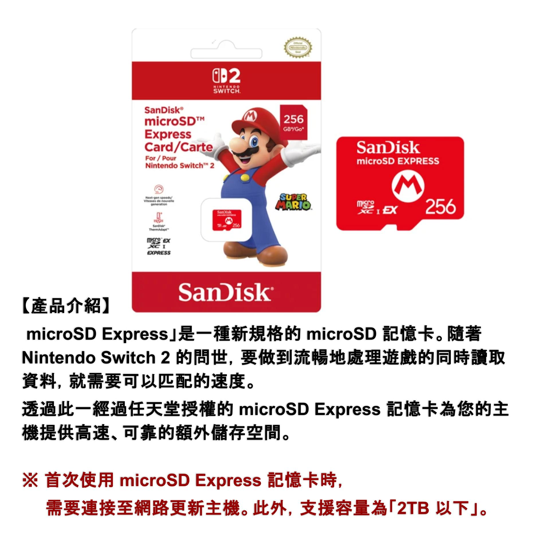 佳里金佳人| SanDisk NS2 Switch 2 特規記憶卡 microSD Express 256G