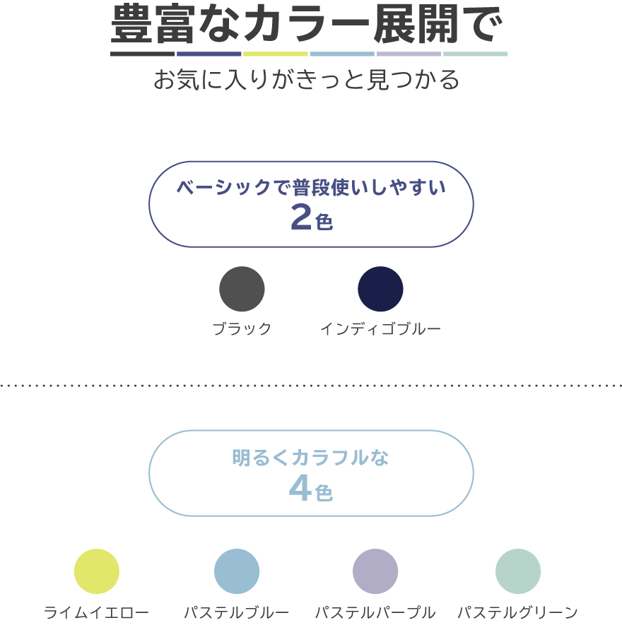 ・繽紛色系:萊姆黃 / 淺藍 / 淺紫 / 淺綠