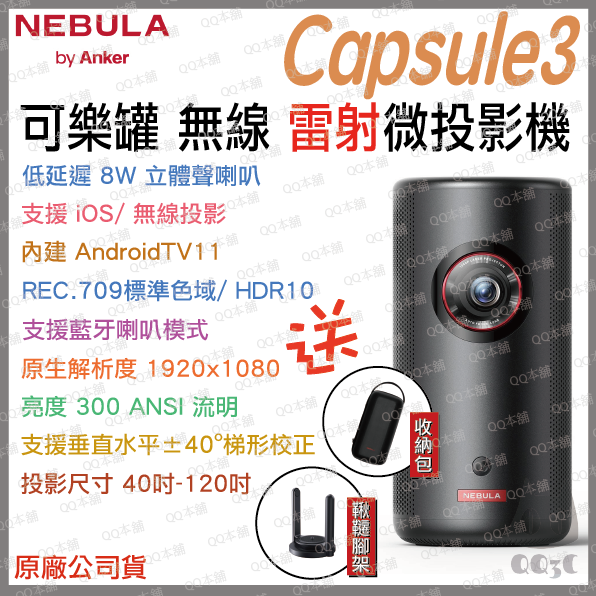 內容物: Capsule 3, 充電器, 快速使用指南, USB-C 充電線, 搖控器, 2× AAA 電池