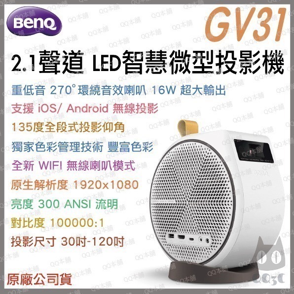 GV31擁有300流明亮度,採特殊水滴狀造型,提供135度全段式投影仰角,轉一下就能輕鬆投影至天花板,這是一款非常適合看電影、打電動的行動投影機