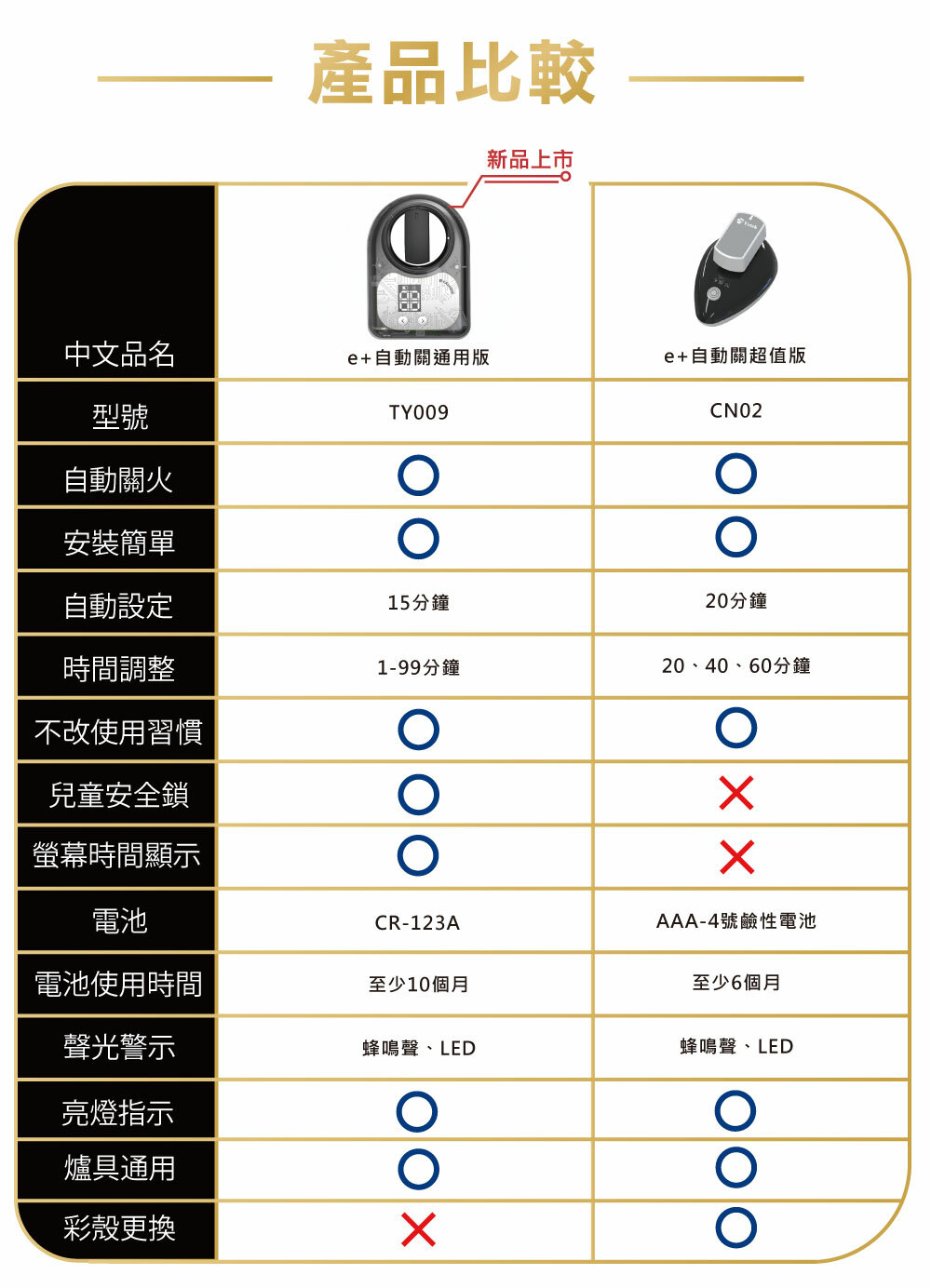 安全安心 - e+自動關安裝時不會改變任何瓦斯爐具的結構