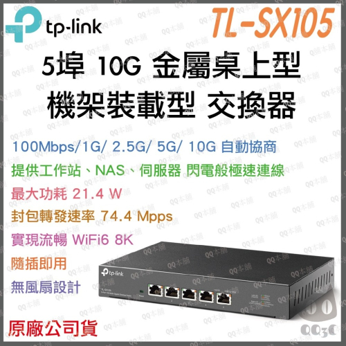 • 802.1p/DSCP QoS傳輸模式儲存並轉發其他規格認證CE, FCC ,RoHS包裝內容• 5 埠 10G Multi-Gigabit 桌上型/機架式交換器 TL-SX105