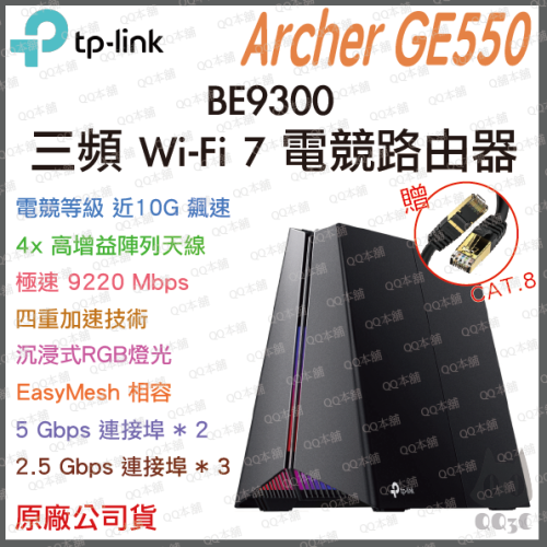 速度極快的遊戲 Wi-Fi,速率高達9220 Mbps: Archer GE550在6 GHz頻段上提供5764 Mbps,在5 GHz頻段上提供2882 Mbps,在2.4 GHz頻段上提供 574 Mbps,隨時準備應對最激烈的戰鬥。使用專用5GHz遊戲頻段,讓您的遊戲,不會與家人的Netflix 4K 串流媒體爭搶網路
