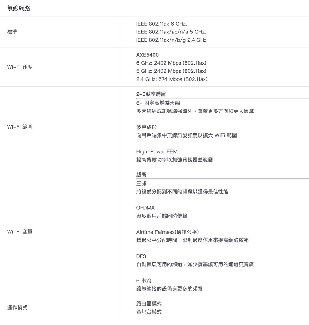 AXE5400 三頻 – AXE5400 三頻 Wi-Fi 提供高達 5400 Mbps 的 Wi-Fi 速度。