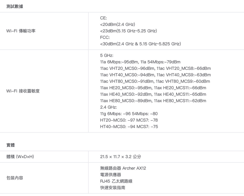 向下相容 : Archer AX12 支援所有 802.11 標準和 WiFi 設備。