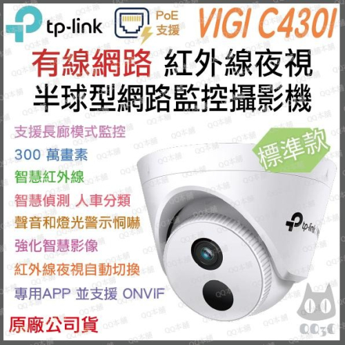 《 tp-link 原廠 紅外線夜視 有線 PoE 》VIGI C430I 半球型 攝影機 監視器 攝像頭