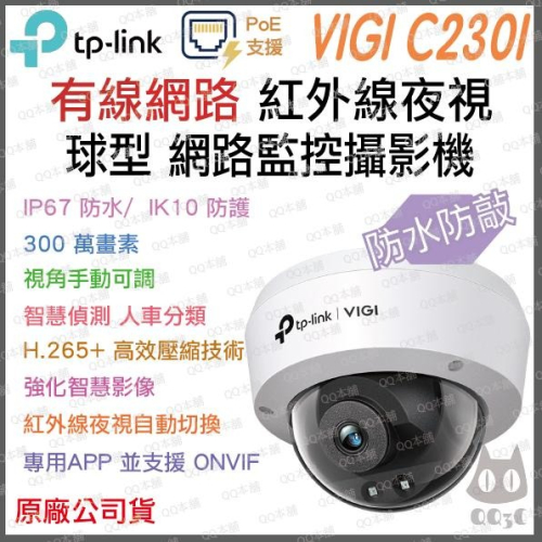 《 tp-link 原廠 紅外線夜視 防水 有線 PoE 》VIGI C230I 球型 防撞 攝影機 監視器 攝像頭