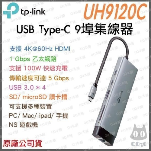 《 tp-link 4K HDMI 9合1 》UH9120C USB Type-C 9埠 集線器 HUB 隨插即用