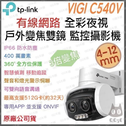《 tp-link 原廠 防水 可動 全彩夜視 雙鏡 變焦 》VIGI C540V 360度 攝影機 監視器 攝像頭