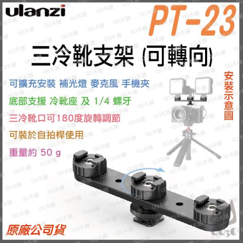 《 Ulanzi 優籃子 配件 可接 自拍桿 腳架 相機 》PT-23 可調式 三冷靴 擴充支架 熱靴
