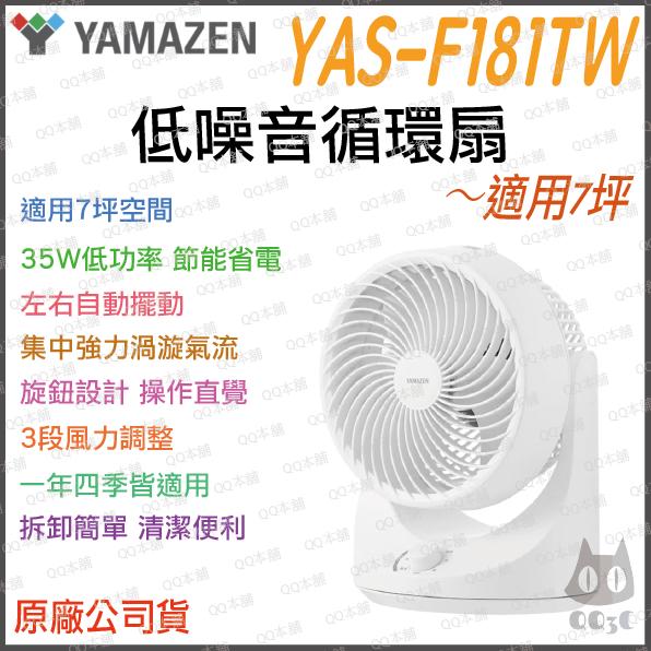 《 免運 台灣出貨 自動擺頭 》日本 YAMAZEN 山善 YAS-F181TW 低躁音 循環扇 電風扇