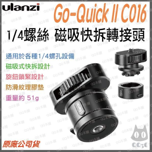 《 原廠 磁吸 1/4 快拆 》ulanzi 優籃子 Go-Quick II C016 螺絲孔 磁吸快拆 轉接頭 雲台