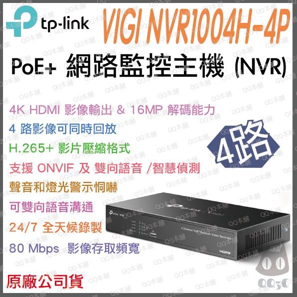 《 tp-link 免運 公司貨 4 路 PoE+ 》VIGI NVR1004H-4P 監控主機 監視器 主機