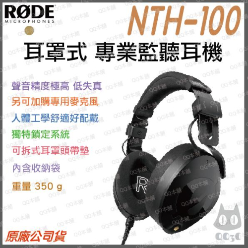 《免運 現貨 台灣出貨 公司貨 開發票》Rode NTH-100 專業 耳罩式 監聽耳機