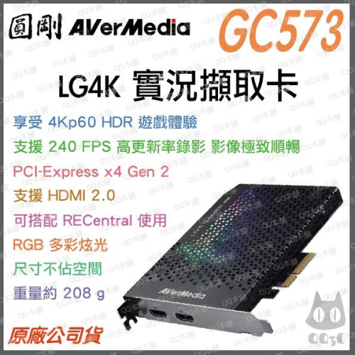 《 送滑鼠墊 現貨 原廠 保固一年》圓剛 GC573 LG4K 實況擷取卡 4K HDR 直播 實況 擷取盒 可錄