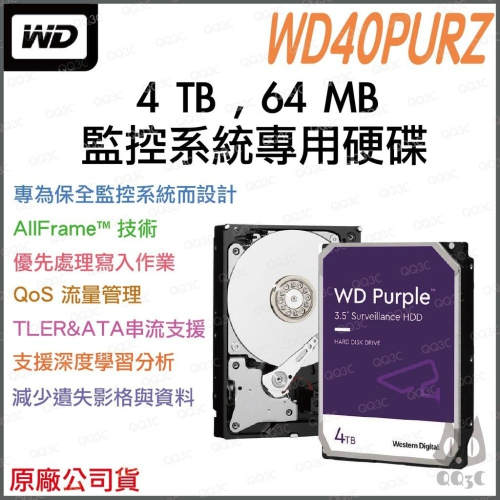 《 免運 公司貨 》WD 紫標 4TB NVR 監控系統專用硬碟 攝影機硬碟 硬碟 監控